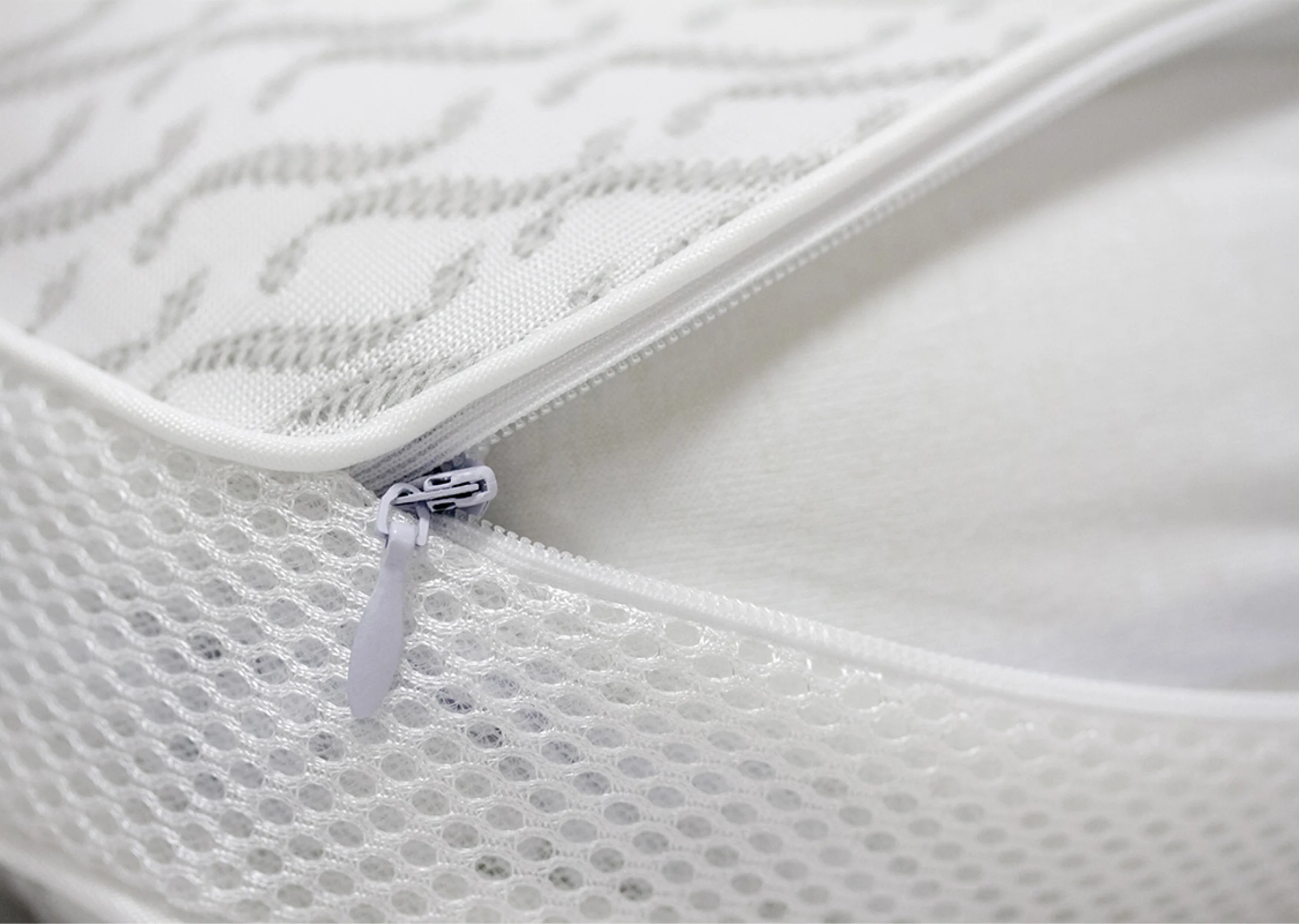 Съёмный чехол выполнен из трикотажа, в составе которого есть охлаждающая нить NanoCool - эта нить придаёт чехлу приятный эффект охлаждения и способствует крайне медленному нагреванию поверхности подушки.